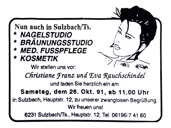 Drei Jahre später - 1991 entstand folgerichtig das Unternehmen in Sulzbach am Taunus, das ich 1997 in Praunheim alleine fortsetzte.